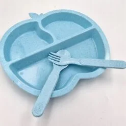 Apple Shaped Kids Plastic 2 Plates With Spoon & Fork