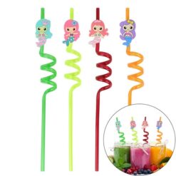 4 Pcs Cute Cartoon Print Plastic Drinking Straw